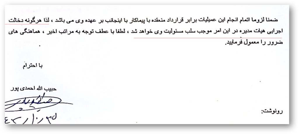 اظهارنامه هیئت مدیره پس از عدم انجام تعهدات