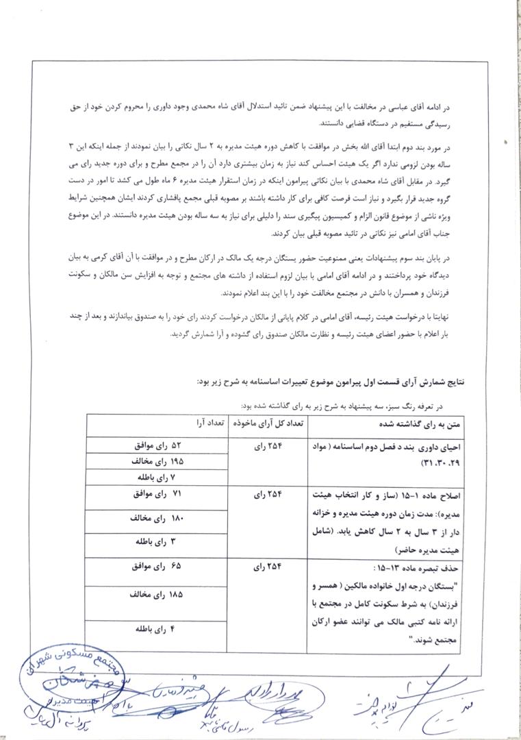 انشالله در چند روز آینده پس از تهیه و تکمیل صورتجلسه مجمع توسط هیئت رئیسه مجمع، مشروح مصوبات و صورتجلسه مجمع از طریق همین صفحه و نصب در بوردها به استحضار همه مالکان گرامی خواهد رسید.